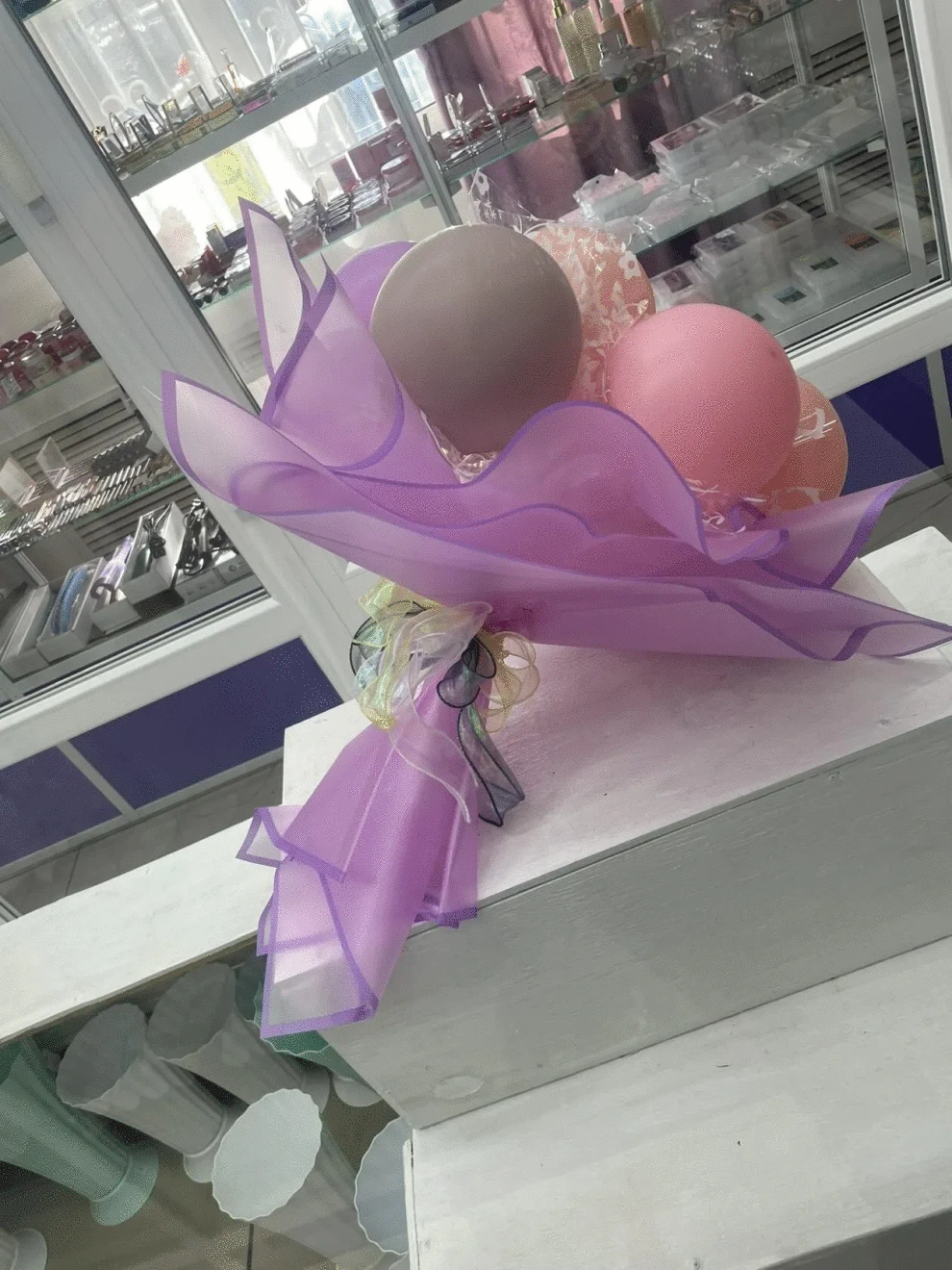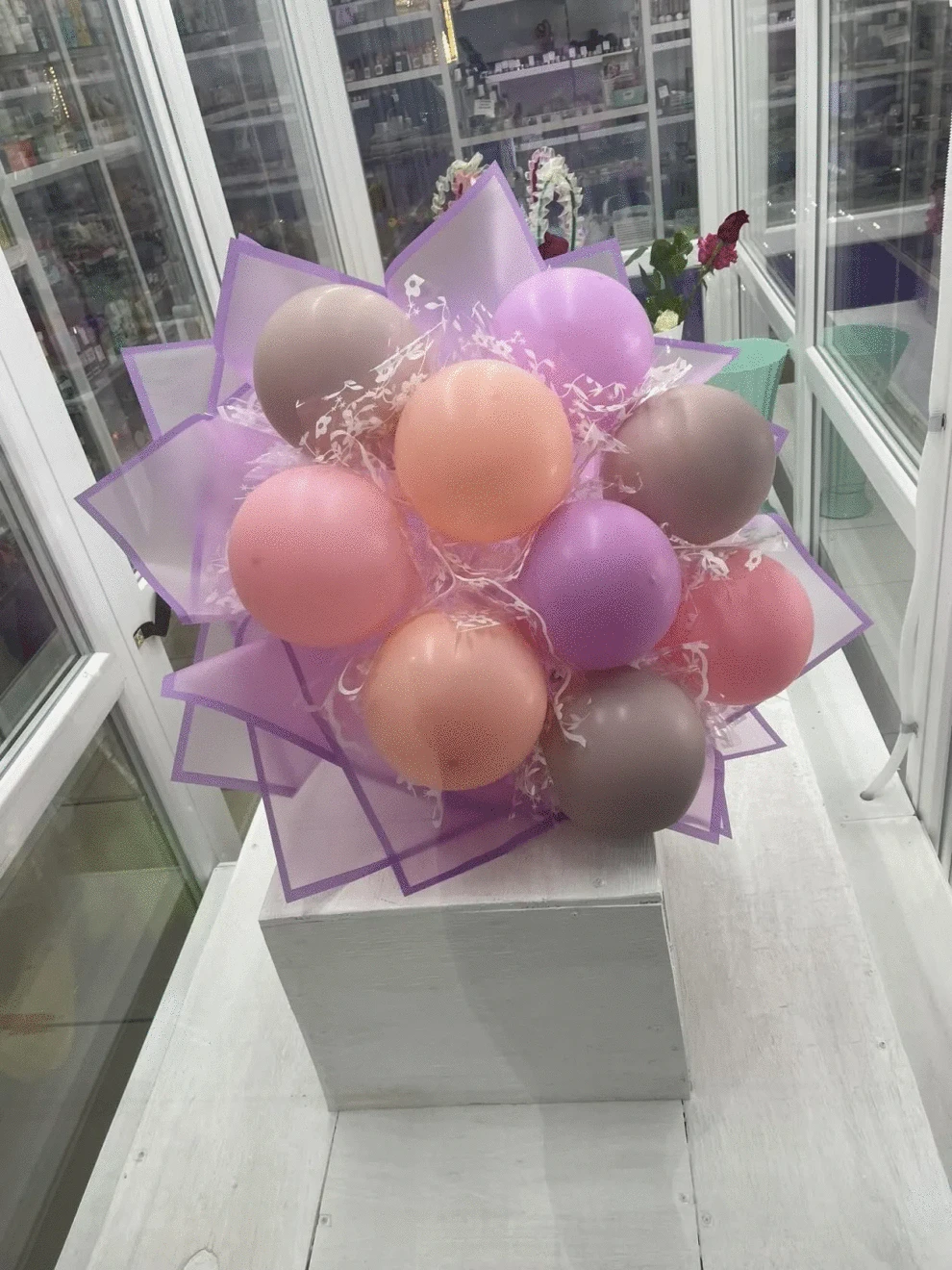 Представляем наш нежный букет из воздушных шаров в сиренево-розовых тонах — идеальный микс легкости и утонченности. Мягкие оттенки лаванды и нежной розы, словно лепестки весенних цветов, создают атмосферу праздника и романтики.